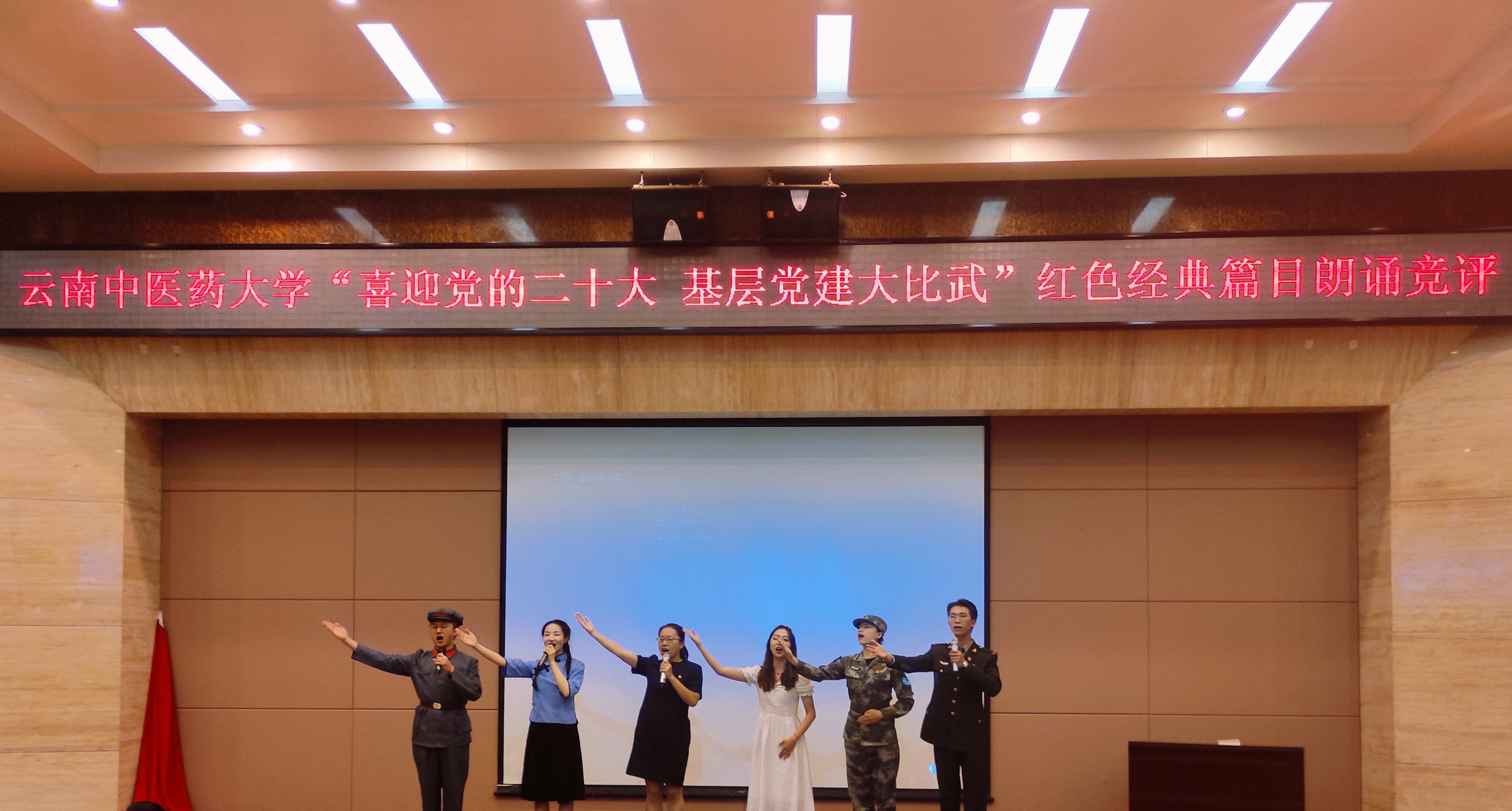 诵读比赛环节紧扣红色主题,内容丰富,形式多样。15支参赛队精心准备,参赛选手精神饱满,士气高昂,《可爱的中国》《祖国不会忘记》《红船,从南湖起航》《以吾辈之青春,捍卫盛世之中华》等作品轮番上演,选手们将一个个感人的红色革命故事、一首首经典诗文诵读作品,以声情并茂、抑扬顿挫的语调,结合音频、视频和情景演绎等表现形式,抒发对中国共产党及国家的炙烈情感,展现当代共产党员的使命担当。整场朗诵氛围浓厚,选手们用朗诵传递激情,用声音传递力量。大家发自内心的深情朗诵引起了现场党员的强烈共鸣,心灵受到了震撼,思想受到了洗礼,精神受到了鼓舞。